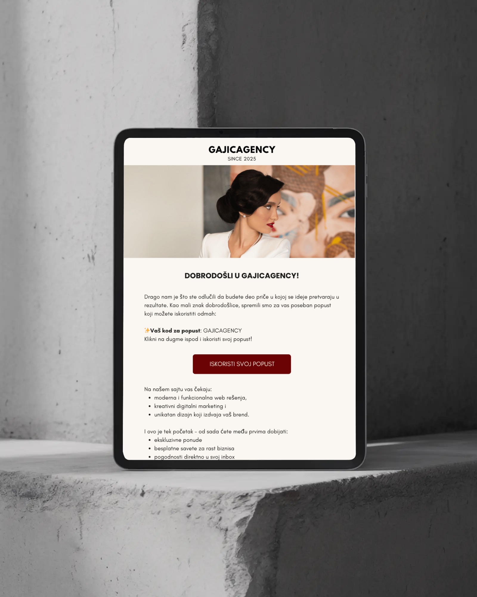 „Rad sa GajicAgency bio je pravo osveženje — profesionalni, brzi i posvećeni. Saslušali su moje želje i pretvorili ih u moderna, funkcionalna rešenja. Komunikacija je bila jasna i bez stresa, a rezultat je sajt koji tačno odražava ono što sam želela. Topla preporuka svima koji traže pouzdan tim i kvalitetan sajt.“